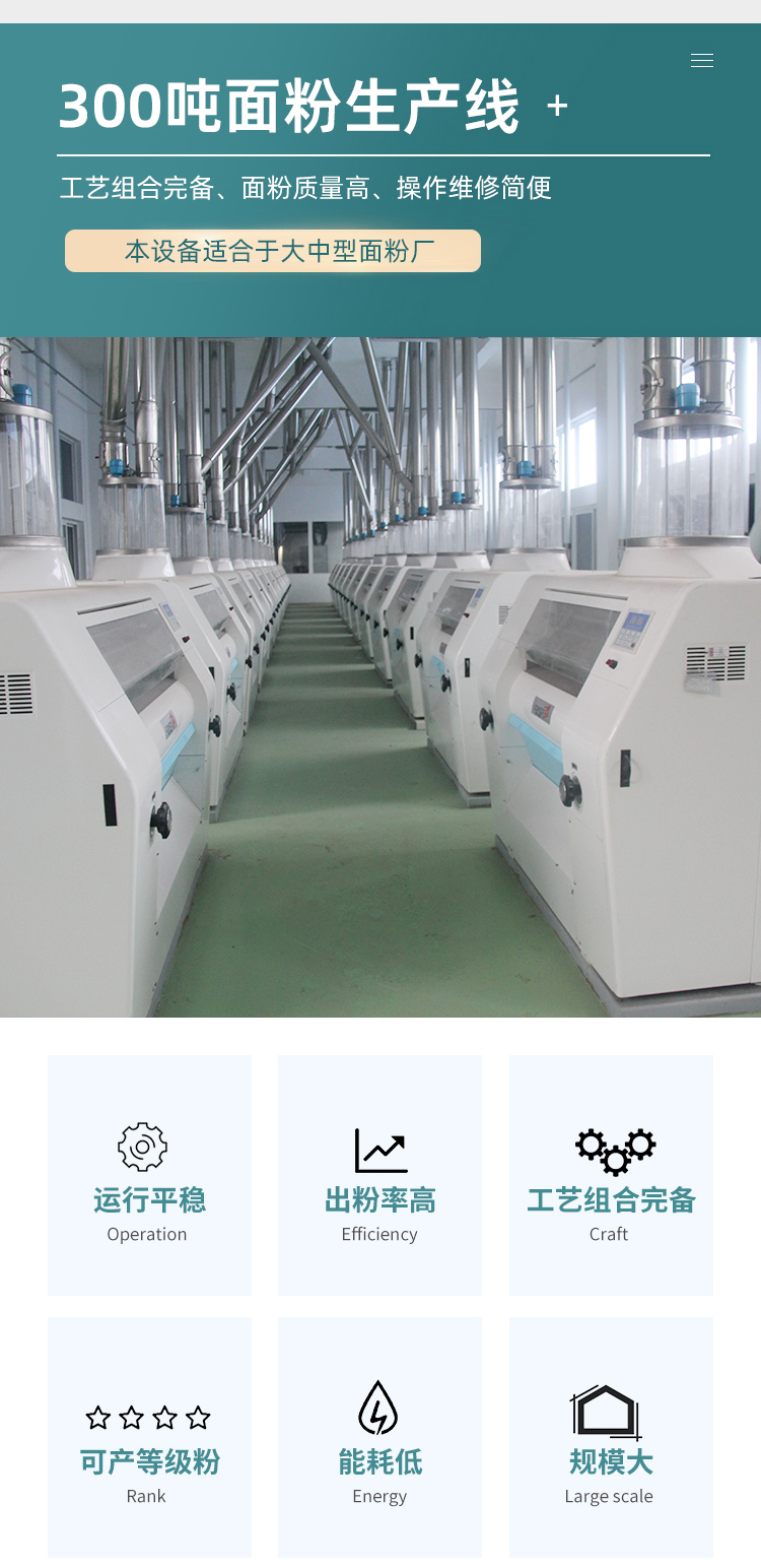 300吨级面粉加工机械特点: